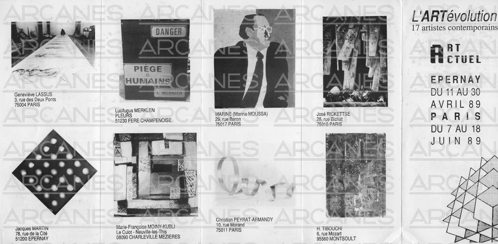 Dépliant de l'exposition "L'ARTévolution" organisé par Art Actuel à Epernay le 11 au 30 avril 1989 et à Paris le 7 au 18 juin 1989.